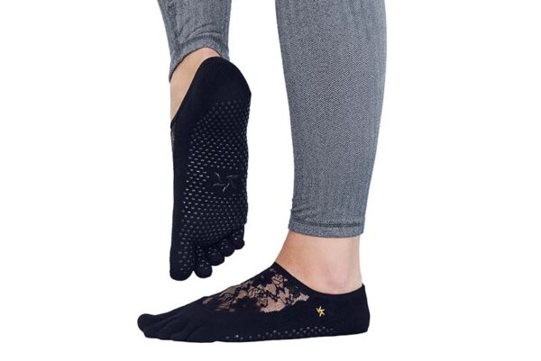 Nedrseče nogavice na prste za vadbo, segajo do gležnja z jezičkom za lažje sezuvanje. Na nartu je nameščena stilsko dovršena odprtina, ki stopalu nudi poseben izgled.