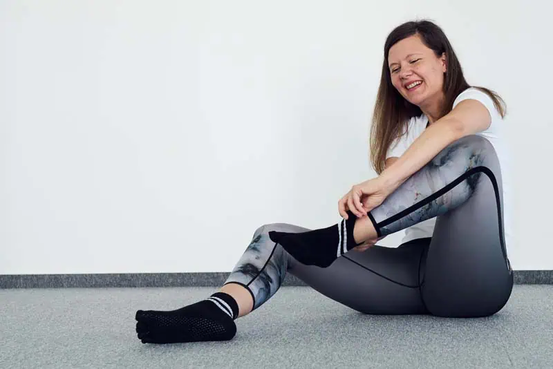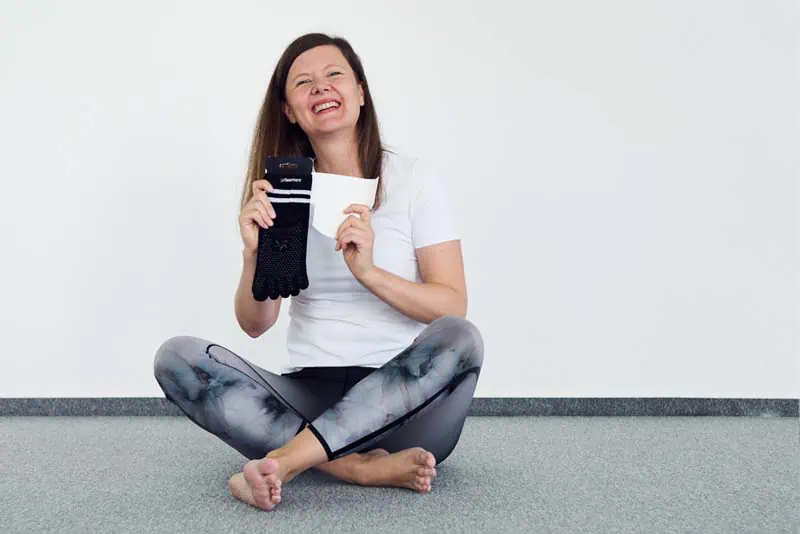 Največja gibalna avtonomija in dober oprijem vseh nožnih prstov sta lastnosti, ki odlikujeta naše nogavice. Izdelane so na način, da omogočajo optimalno pričvrstitev noge na vadbeno podlago, kar preprečuje nastanek kakršnihkoli bolečin, zvinov ali drugih neprijetnosti. Njihova oblika posnema bose noge, kar je naravno in najboljše stanje, saj vam aktivacija celotnega stopala z vsemi desetimi prsti omogoča edinstveno vadbeno izkušnjo. Zahvaljujoč ločenosti vsakega prsta se ustvarja tudi higienska pregrada, ki prstom omogoča svobodo in jih ne ovira pri vadbi, hkrati pa jih varuje pred morebitnimi bacili v prostoru. S tem, ko se aktivirajo mišice stopala je vašemu telesu omogočeno, da pride do vrha svoje zmogljivosti. Nedrseča plast na spodnjem delu nogavic preprečuje nastanek žuljev in vlage med prsti medtem, ko hrkati spodbuja kroženje krvi. Vse naše nogavice so narejene iz ekološko pridelanega bombaža, odlikuje pa jih tudi prožnost kar pomeni, da se prilagodijo vsakemu stopalu.